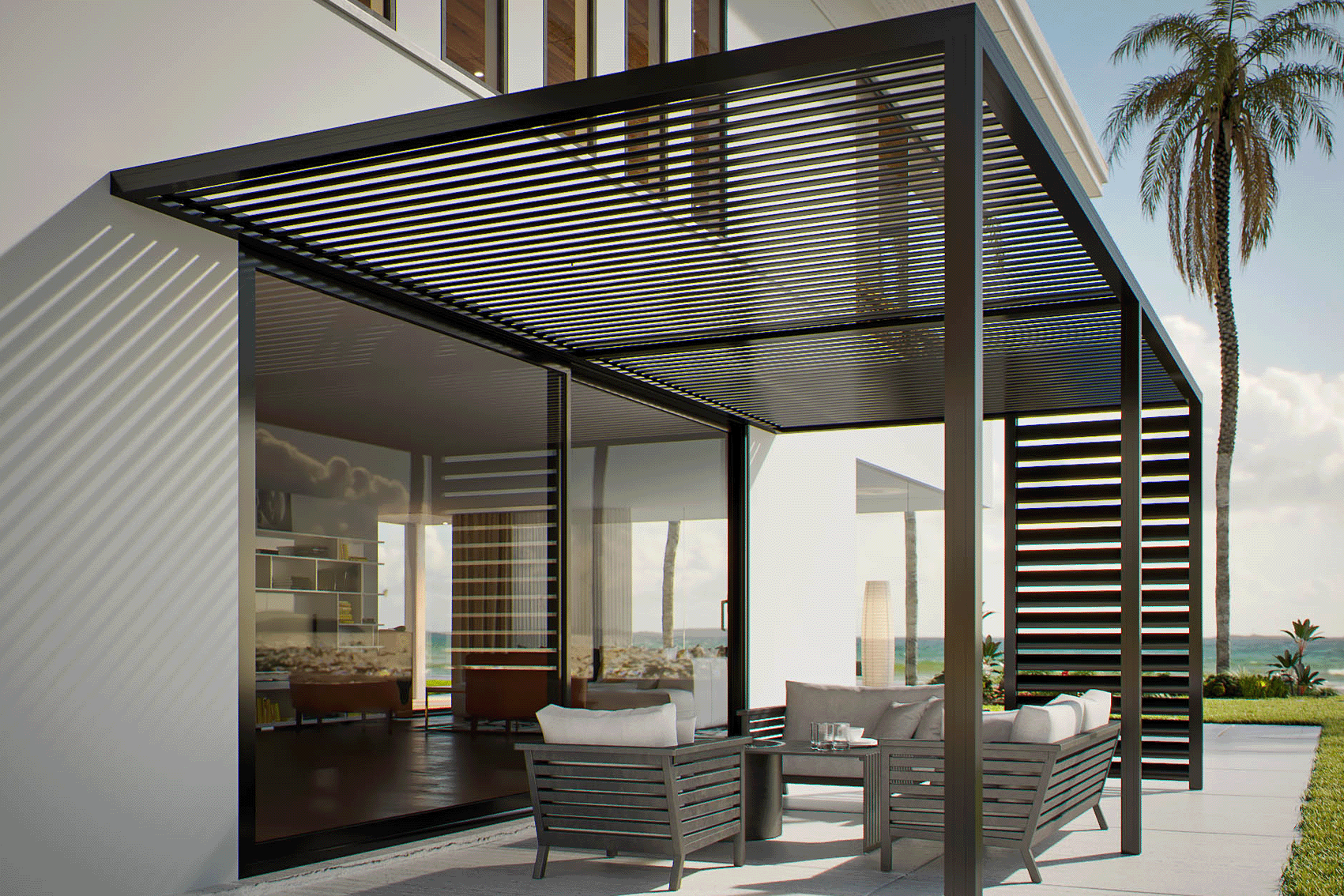 Πέργκολα με σταθερές περσίδες και ευέλικτο σχεδιασμό.