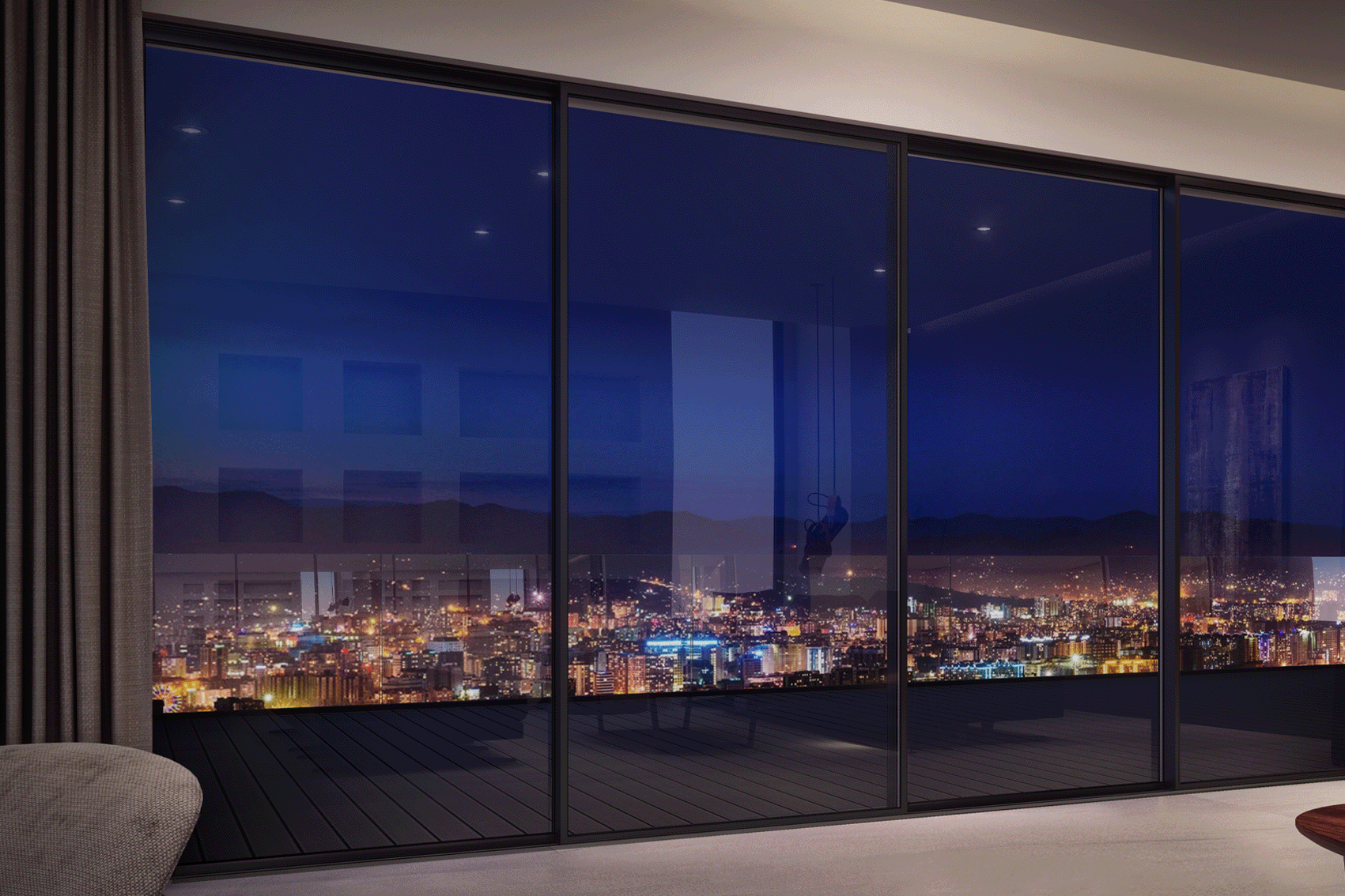 - Slim 27 mm interlock profiles achieve a slim look. The system can also be concealed in walls and floors to enhance the slim-line design.